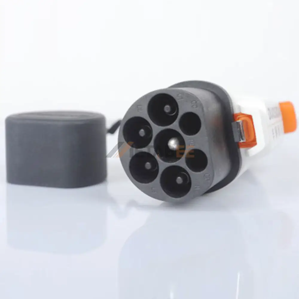 This GB/T Standard AC EV charger is a reliable and compliant connector designed for single-phase electric vehicle charging in line with the GB/T 20234.2-2015 standard. Engineered for durability and safety, it features a robust thermoplastic housing and high-conductivity silver-plated copper alloy contacts, ensuring efficient power delivery and excellent corrosion resistance. Its IP65 rating guarantees protection against dust and water jets, making it suitable for various outdoor and indoor charging environments.
