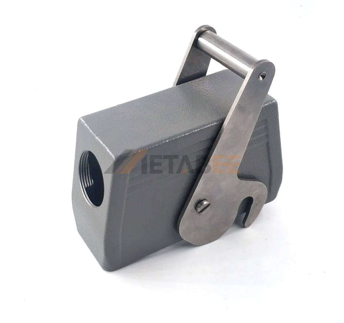 The heavy-duty connector hoods are available in ten standard sizes: 3A, 10A, 16A, 32A, 6B, 10B, 16B, 24B, 32B, and 48B. They are made of aluminum die-cast material and provide reliable IP65 protection. Each hood features a robust locking interface and a built-in sealing gasket to ensure a secure connection with the matching housing. Multiple cable-entry directions and thread sizes are available to support different wiring layouts and installation needs.