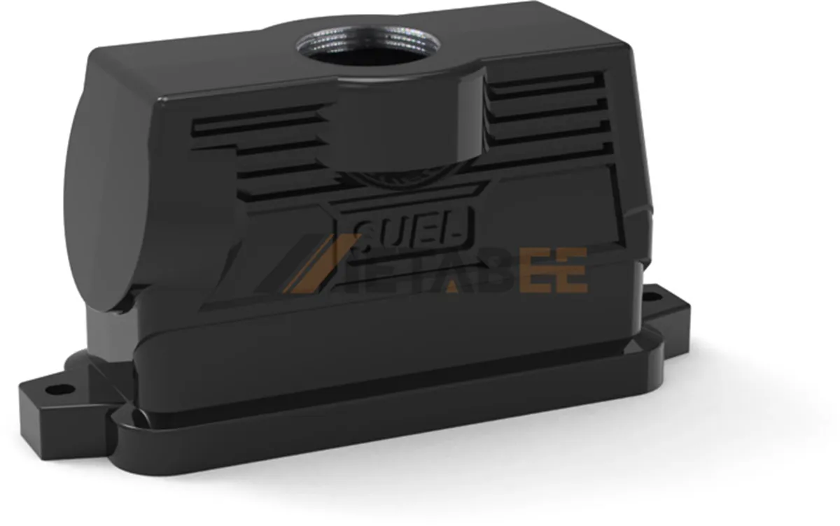 The heavy-duty connector hoods are available in ten standard sizes: 3A, 10A, 16A, 32A, 6B, 10B, 16B, 24B, 32B, and 48B. They are made of aluminum die-cast material and provide reliable IP65 protection. Each hood features a robust locking interface and a built-in sealing gasket to ensure a secure connection with the matching housing. Multiple cable-entry directions and thread sizes are available to support different wiring layouts and installation needs.
