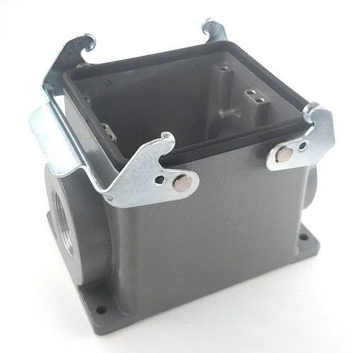 This H32B housing features a dual-lever system for a highly secure, vibration-resistant connection. It is engineered for direct surface installation. A side entry port facilitates easy cable routing. The die-cast aluminum body provides excellent mechanical strength for heavy-duty applications.