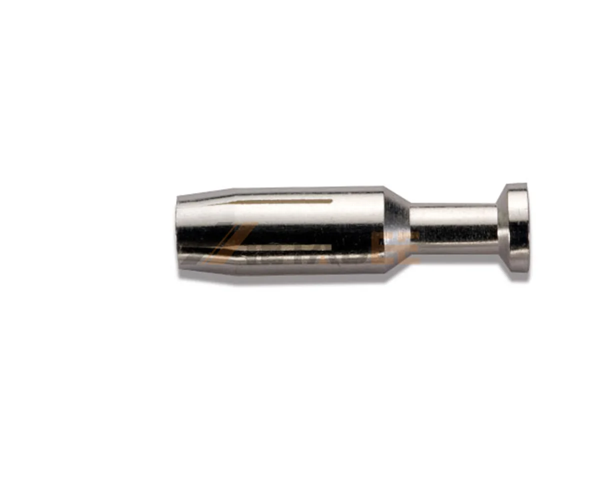 This heavy duty connector contact is designed for 40A inserts and uses an M-type female pin structure. The contact is made of copper alloy and finished with silver plating to provide stable conductivity and low contact resistance. The crimp design supports firm wire attachment and steady electrical flow. The female pin maintains accurate mating with the corresponding male contact and keeps the interface stable during repeated use. The silver surface helps slow oxidation and supports reliable long-term performance.