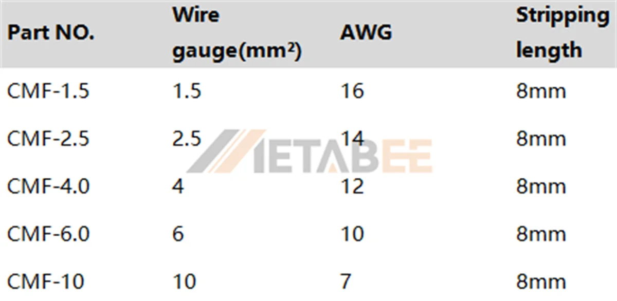 Note: The product supports multiple wire gauge options, and users can select the size that matches their wiring needs.