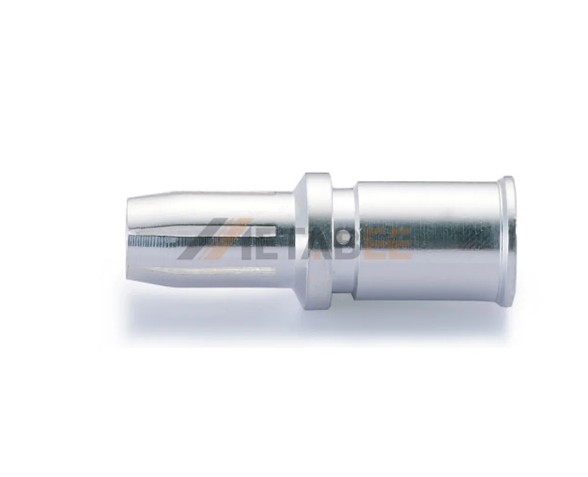 This heavy duty connector contact is built for 70A inserts and uses a female crimp terminal design. The copper alloy body is coated with silver plating to support low resistance and stable current flow. The crimp structure creates a firm wire joint and maintains consistent electrical performance. The contact offers steady mating alignment and reliable engagement with the matching male pin. The silver surface helps limit oxidation and keeps the interface stable during long service cycles.