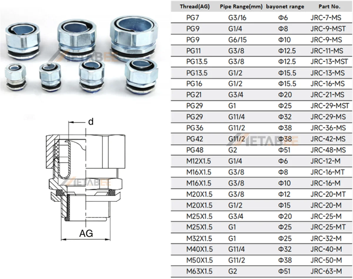 Note: The product supports multiple wire thread sizes, and users can select the size that matches their wiring needs.