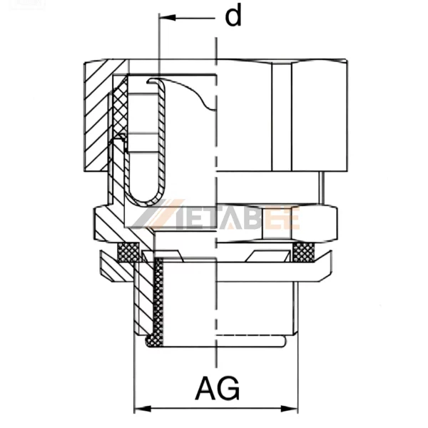 Heavy-Duty Metal Hose Connector with Nut, Metric/PG Thread