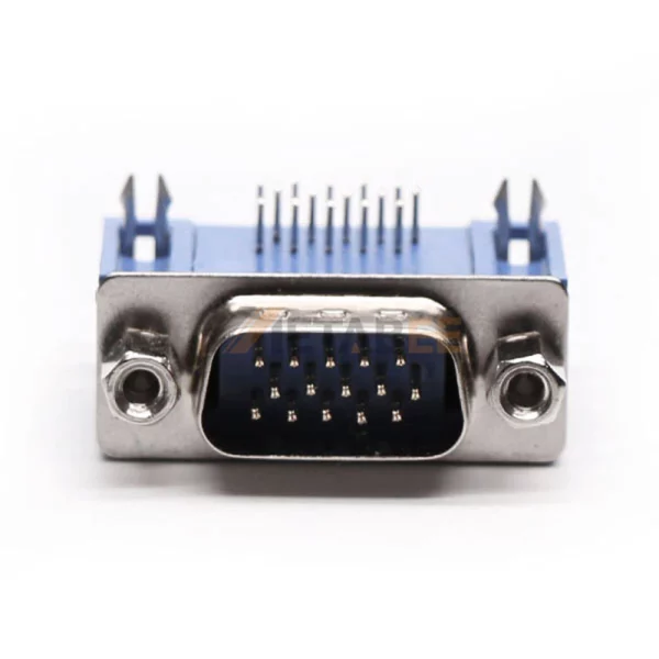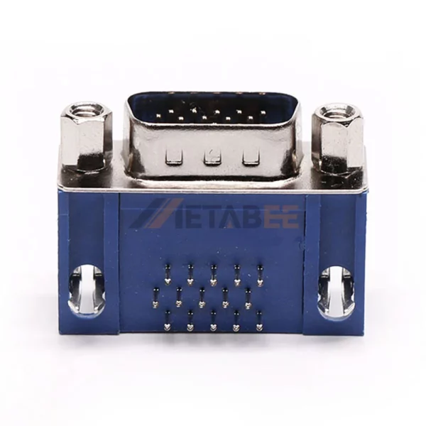 This right-angle high-density D-Sub 15-pin male connector delivers maximum connectivity in minimal space. Engineered with a precision 2.29mm pitch. This compact spacing enables high-density signal transmission. Features 15 male signal contacts arranged efficiently in 3 rows. Designed for panel mounting with a long bracket for secure PCB integration via through-hole soldering. The front screw lock ensures vibration-proof mating security. Contacts utilize stamped brass construction. Finished with nickel underplate. Its nickel-plated steel shell provides rugged corrosion resistance. Operates in temperatures from -25°C to +125°C. Rated for 250V and 5A current capacity. Ideal for space-constrained VGA and industrial applications demanding reliable high-density interconnects.