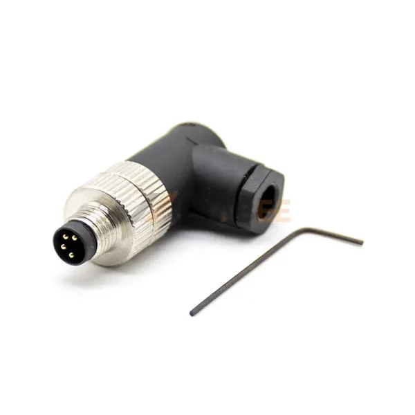 M8 4 Pin A Coded Male Field Wireable Connector, Right Angle, Plastic Shell