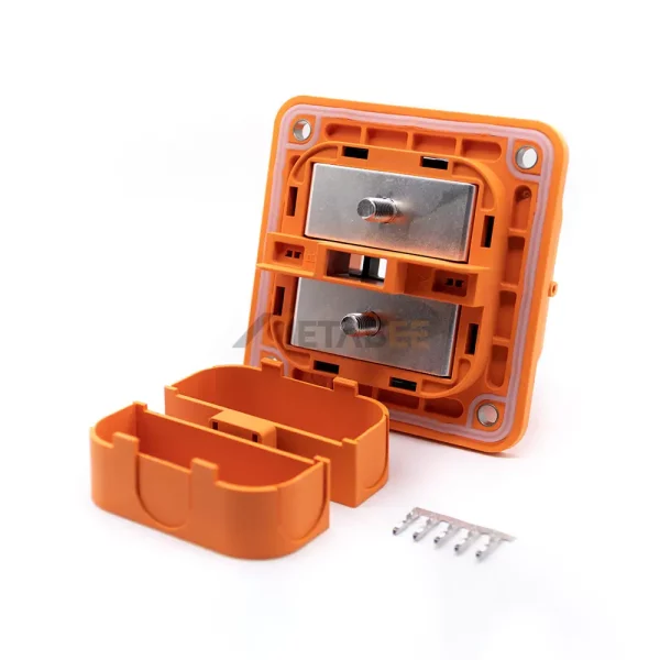 Built with a durable nylon housing, copper-alloy contacts, and a silver-plated surface finish, this MSD connector delivers excellent conductivity, low contact resistance, and long-term reliability. Its crimp-termination design and panel-mount structure enable fast, stable installation in battery packs, power control units, and energy modules. With a rated current of 630A and voltage up to 800V, it provides the high-power handling required for next-generation electric vehicles.