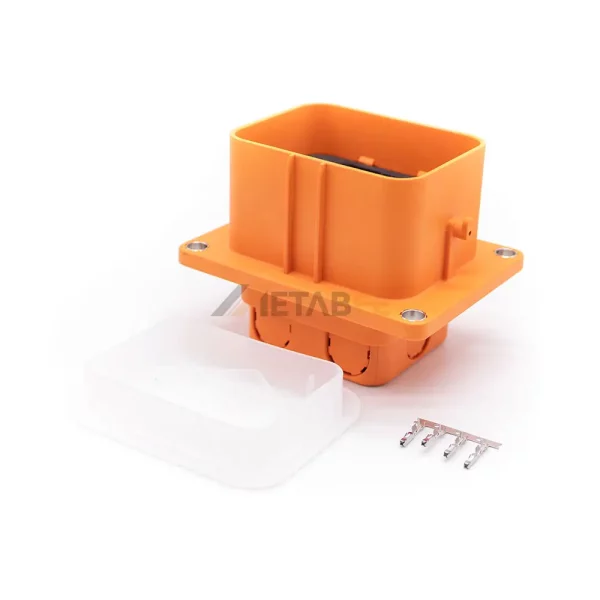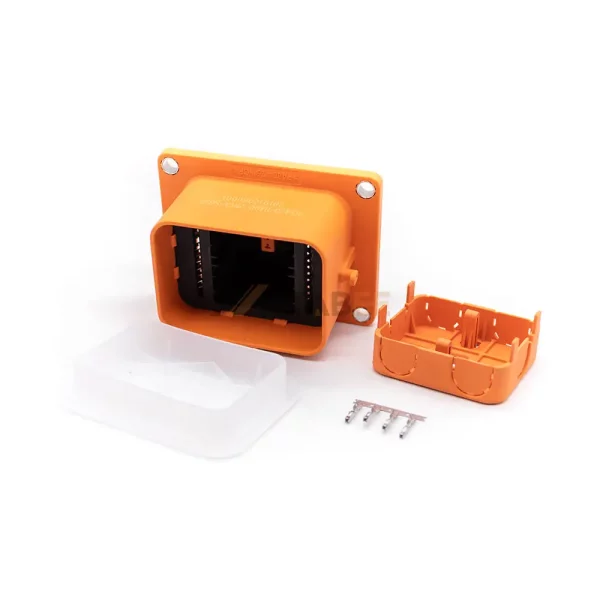 This mini manual service disconnect (MSD) Connector is an essential high-voltage interlock component designed for electric vehicles. Engineered with an N key for secure mating, it ensures correct orientation and prevents mismating. The connector features a robust nylon housing, meeting the UL94V-0 flammability standard, and offers an IP67 rating for superior protection against dust and water ingress. Its panel mount design facilitates straightforward and secure installation in vehicle systems.