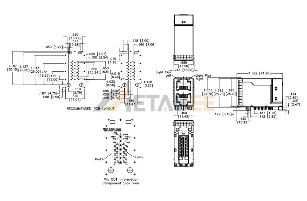 - 2×1 Stacked Design: Dual-port layout saves valuable PCB horizontal space.