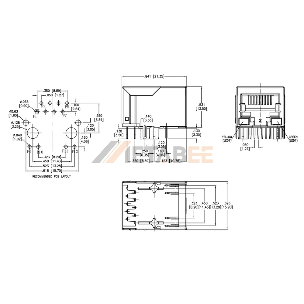 Combining Power over Ethernet with integrated signal filtering, this PoE RJ45 MagJack with LEDs streamlines networking hardware designs. High-quality transformers inside the unit ensure stable 10/100 Base-T data flow while providing essential electrical isolation. Because it uses a nickel-plated brass shell with EMI fingers, it creates a robust shield against interference in crowded electronic environments. The built-in board lock mechanism guarantees a secure mechanical fit on the PCB during daily operation. Yellow and green LED indicators are positioned for clear visibility, offering instant status diagnostics at a glance. Technical teams rely on this compact right angle port for professional telecommunication and office gear.