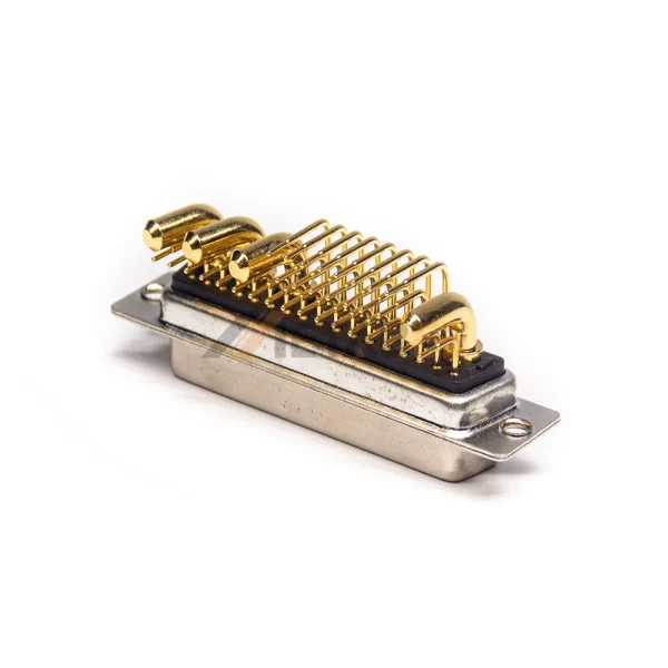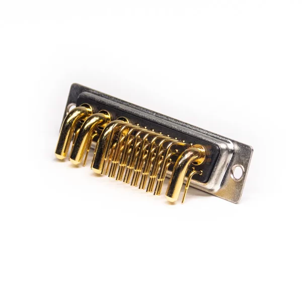This is a right angle 36W4 combo D-sub connector with a C-size shell. The Combo D-Sub mixes both power contacts and signal contacts in the same connector. 36W4 has four power contacts. The power contact can carry up to 40A, meeting device power requirements, while the signal contacts handle data transmission, achieving integrated power and signal integration. The connector utilizes high-quality, machined, gold-plated terminals, ensuring excellent conductivity and long-term reliability. Its wide operating temperature range of -55°C to 125°C and UL94 V-0 flame retardancy rating ensure excellent performance in complex industrial environments. Our complete D-sub product line and dedicated accessories enable us to provide flexible and cost-effective connectivity solutions to meet any complex application challenge.
