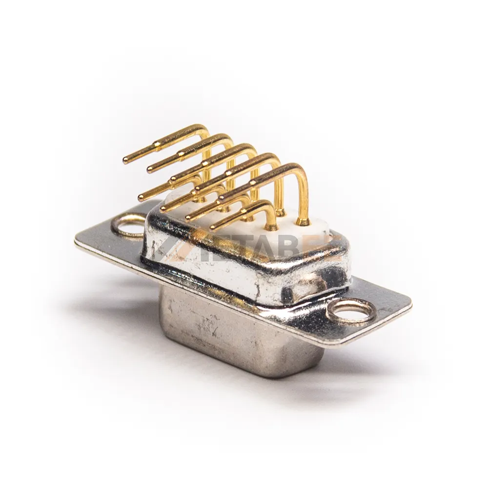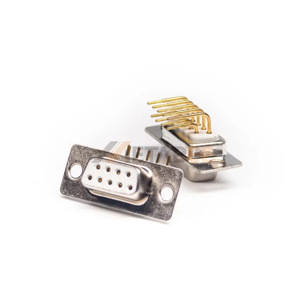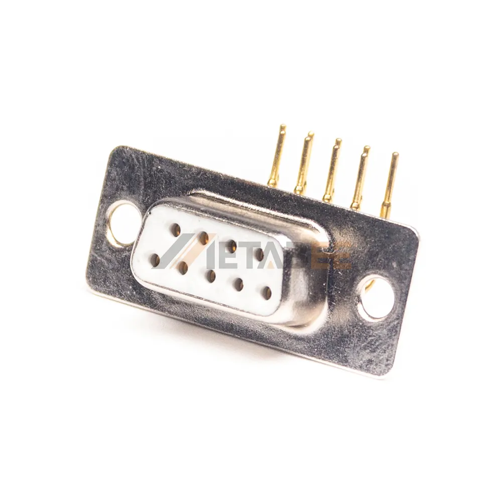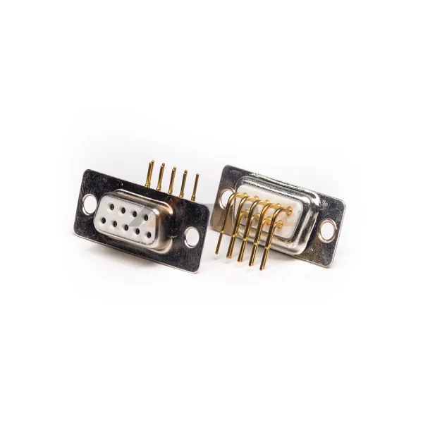 This right angle D-sub DB9 connector is engineered for secure PCB mounting. Its right angle profile is ideal for space-constrained layouts. This connector uses high-quality machined contacts for a flawless and durable connection. The connector mounts using through-hole technology; its solder pins are inserted into the PCB and soldered to form a robust, permanent mechanical and electrical bond. Gold-plated contacts ensure superior signal integrity, making it a high-reliability choice for industrial hardware and embedded systems.