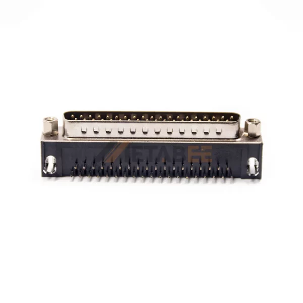 This right angle DB37 connector is engineered for secure PCB mounting. It uses the through-hole mounting method, creating a strong and reliable solder joint for excellent mechanical stability. Its right angle profile is ideal for space-constrained layouts. The connector mounts using through-hole technology; its solder pins are inserted into the PCB and soldered to form a robust, permanent mechanical and electrical bond. Gold-plated contacts ensure superior signal integrity, making it a high-reliability choice for industrial hardware and embedded systems.
