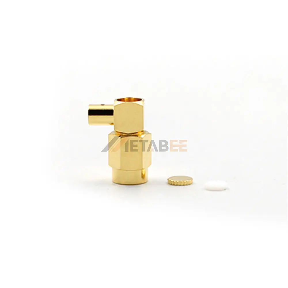 This SSMA male connector from Metabee is a high-quality RF connector designed for cable-type mounting with a reliable threaded coupling mechanism. Featuring a right-angle orientation and clamp termination, It ensures secure and stable electrical connections. The gold-plated brass shell provides excellent corrosion resistance. The Teflon insulator delivers superior electrical insulation, ensuring consistent and dependable performance. The gold-plated brass contact enhances conductivity while ensuring exceptional durability and long-lasting reliability. With a 50 Ohm impedance, this SSMA connector performs seamlessly across a frequency range of DC-6 GHz and is built to operate in extreme temperatures from -65°C to +165°C.
