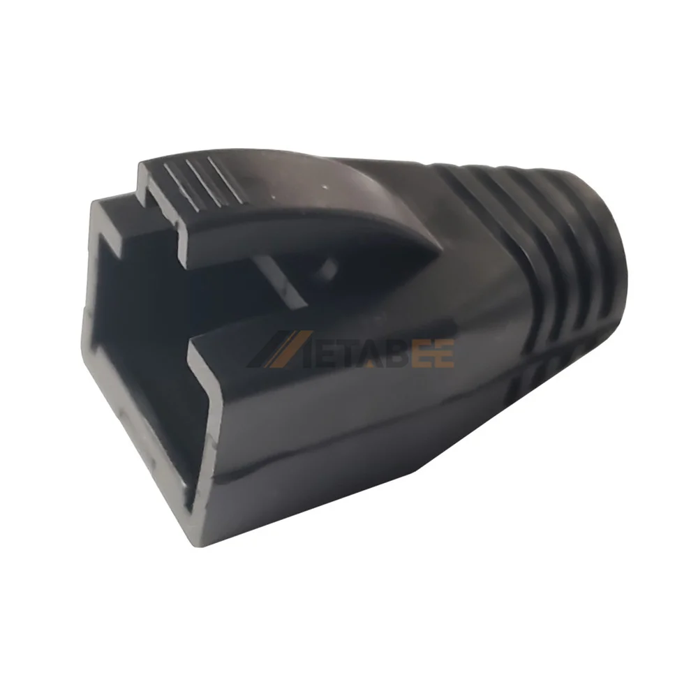 Enhancing the structural integrity of high-speed network cables is straightforward with this RJ45 plug boot cover. It is specifically engineered to fit Cat8 connectors used in 40Gbps data transmission systems. The black housing provides a professional aesthetic while shielding the termination point from excessive bending. Because it features an integrated strain relief, the boot prevents mechanical stress from damaging the internal copper conductors. The snagless design protects the modular plug locking tab during installation in high-density rack environments. Technicians utilize this flexible component to improve the longevity and reliability of shielded patch cords. Its robust material ensures consistent protection in demanding enterprise network infrastructures.