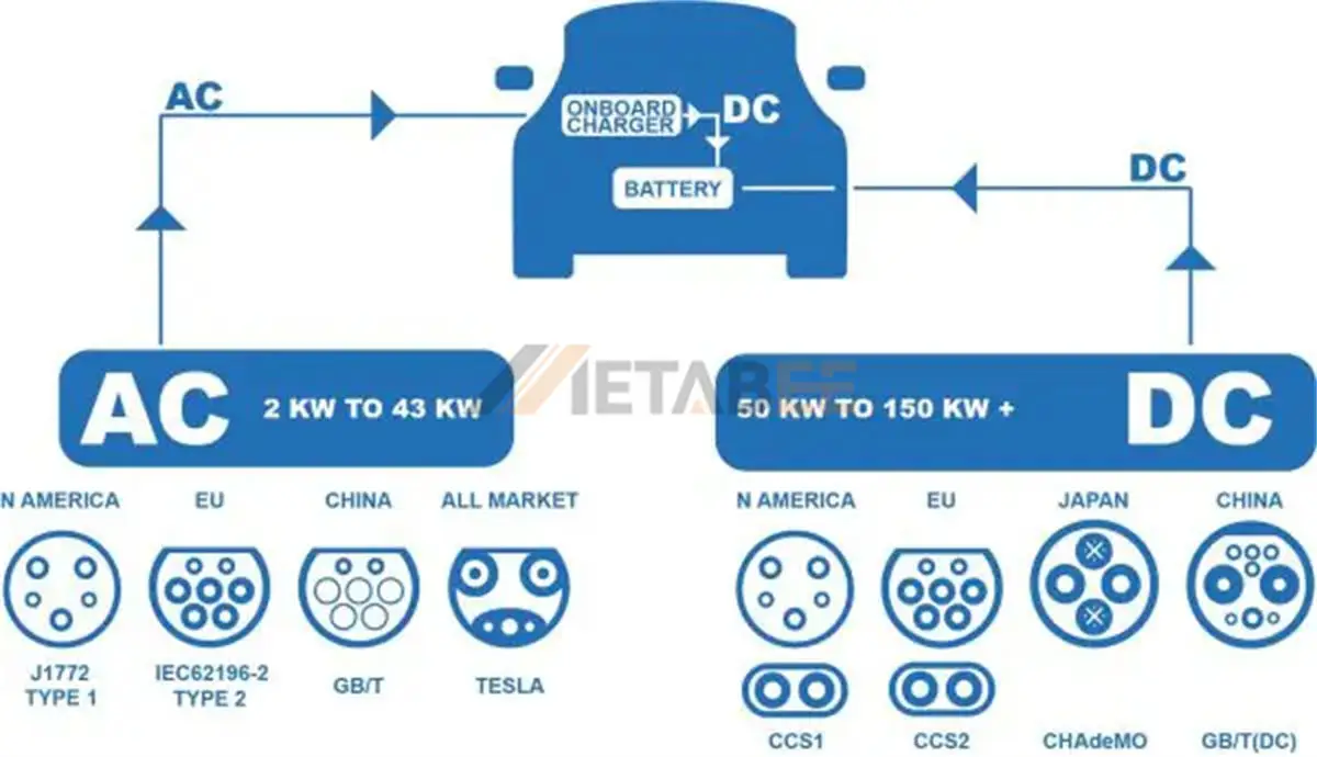 There are currently four DC fast plugs: CHAdeMO, SAE Combo (CCS), GB (Guobiao from China), and the Tesla supercharger plug. All mainstream electric models produced today are compatible with SAE J1772 charging stations. But Tesla vehicles need a charging adapter to use these standard stations.