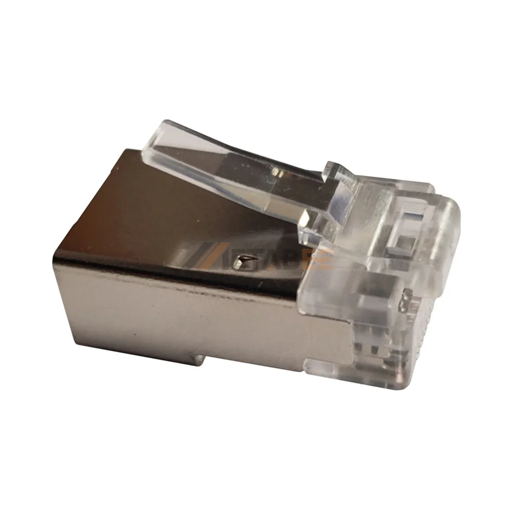 High-frequency data transmission remains stable with this shielded Cat6a RJ45 plug. It is manufactured with a protective metal shell to minimize electromagnetic interference across high-speed links. The connector specifically fits 23-24 AWG flat solid cables required for modern enterprise infrastructure. Utilizing 15-50 μin gold-plated contacts ensures a low-resistance connection and long-term durability against corrosion. Because the internal housing uses clear PC, installers can easily verify wire order during termination. This male connector supports 1.5A current and maintains electrical integrity in complex shielded cabling systems. Many technical teams rely on its robust build for 10Gbps networking applications.