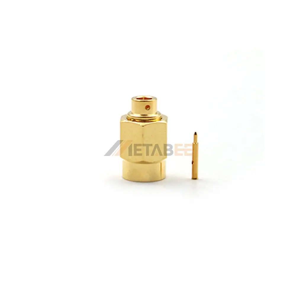 This SSMA male connector from Metabee is a high-quality RF connector designed for cable-type mounting with a reliable threaded coupling mechanism. Featuring a straight orientation and clamp termination, It ensures secure and stable electrical connections. The gold-plated brass shell provides excellent corrosion resistance. The Teflon insulator delivers superior electrical insulation, ensuring consistent and dependable performance. The gold-plated brass contact enhances conductivity while ensuring exceptional durability and long-lasting reliability. With a 50 Ohm impedance, this SSMA connector performs seamlessly across a frequency range of DC-6 GHz and is built to operate in extreme temperatures from -65°C to +165°C.