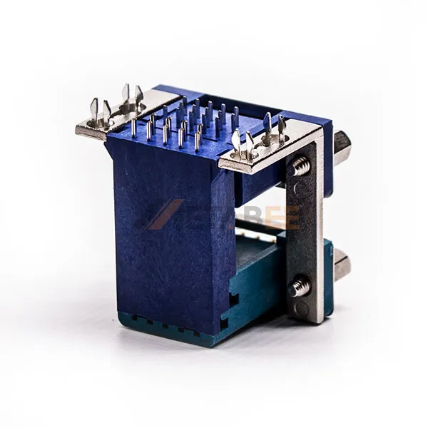This stacked dual-port D-sub connector vertically integrates two 90-degree angled connectors, maximizing the use of limited PCB space and enabling multiple connector interfaces. Constructed of high-temperature-resistant thermoplastic and meeting the UL94 V-0 flame retardant standard, the connector ensures high reliability and safety in a variety of industrial applications. This connector features affordable stamped terminals. The model is a stacked D-Sub connector featuring one 9-pin male and one 15-pin female interface, secure through-hole mounting, and optional mounting hardware to accommodate diverse panel mounting requirements.