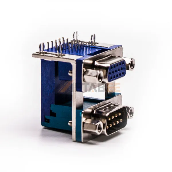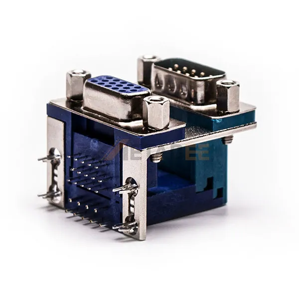 Stacked Dual Port D-Sub Connector, 15 Pin Female and 9 Pin Male, PCB Mount, Through Hole
