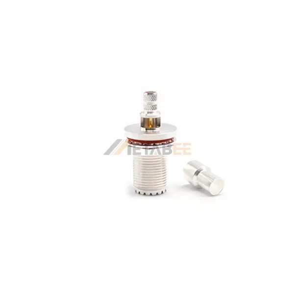 This straight UHF female connector (also known as SO239 connector) is a premium solution designed for high-performance RF connectivity. It features a bulkhead design with a threaded fastening type, providing a robust and stable installation. It utilizes a crimp termination method to provide secure and reliable electrical connections. The shell is constructed with durable nickel-plated brass. The TEFLON insulator ensures optimal signal integrity, while the gold-plated bronze contacts provide excellent conductivity and low contact resistance. Besides, it can support a maximum frequency of 300 MHz and a standard impedance of 50 ohms, making it suitable for various low-frequency RF applications.