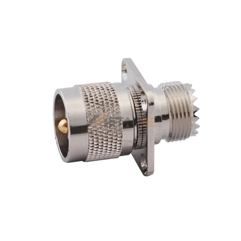 UHF Male / PL-259 to UHF Female / SO-239 Panel Mount Adapter with 4 Hole Flange