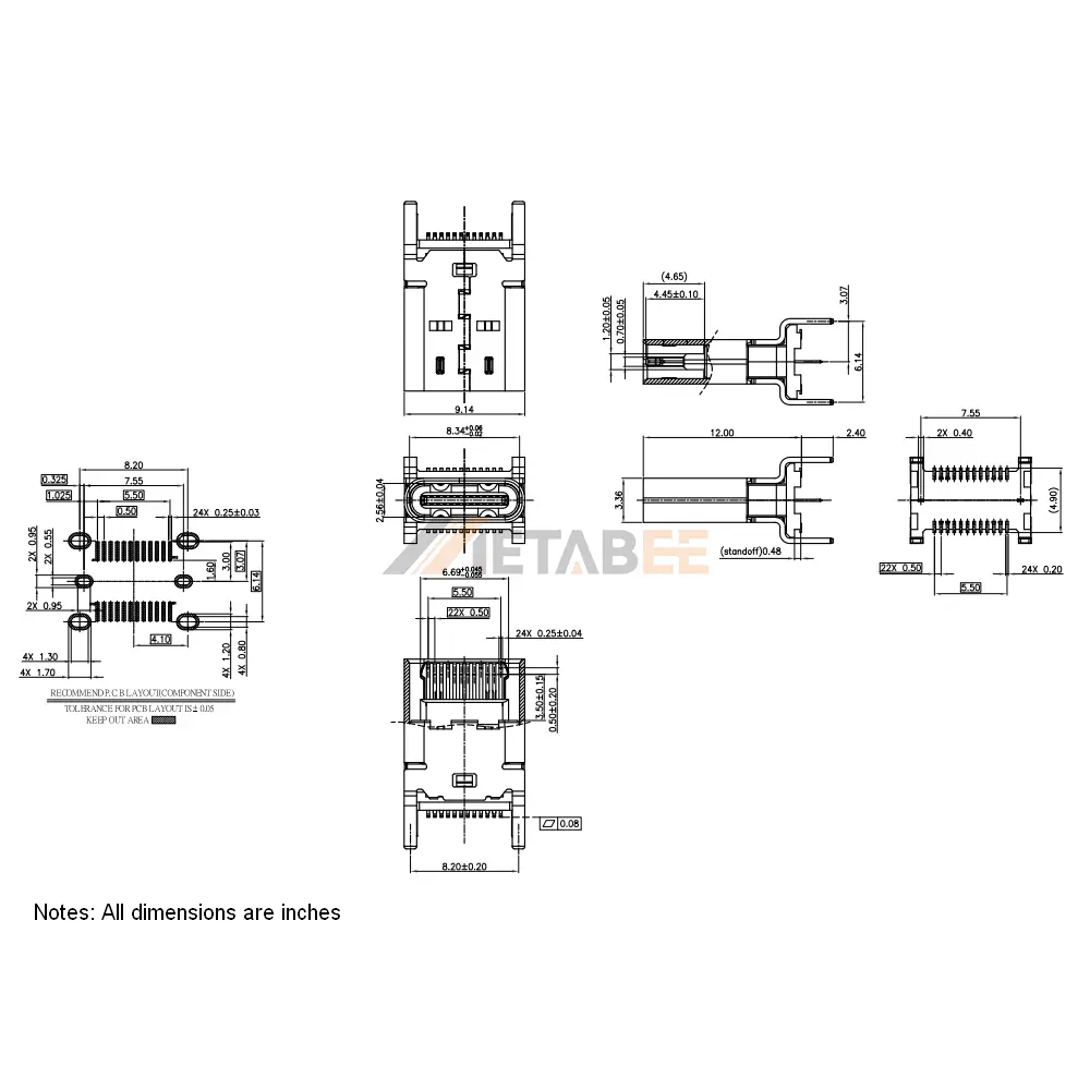 The USB-C 3.1 receptacle is a high-speed connectivity solution designed for modern electronic devices that require reliable data transmission and compact PCB integration. Featuring a single-port Type-C interface with a 24-pin configuration, this connector supports data transfer rates of up to 10 Gbps, enabling fast communication between host devices and peripherals. Its PCB mount structure with a vertical design allows efficient board layout and is suitable for applications such as laptops, tablets, consumer electronics, and industrial equipment.