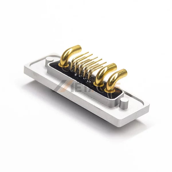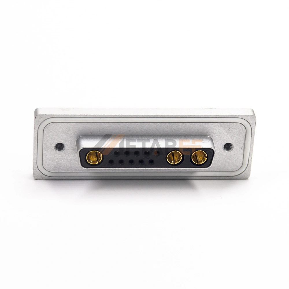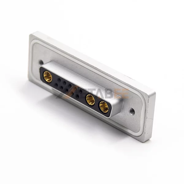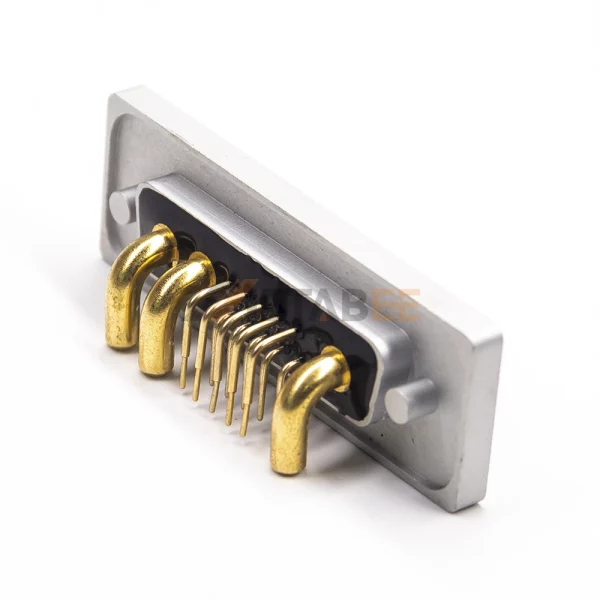 This waterproof IP67 13W3 D-Sub female combo connector delivers dual functionality. Engineered for signal and power transmission in harsh environments. 13W3 has 3 power contacts and 10 standard signal contacts. Achieves IP67 waterproof rating. Protects against dust and water immersion. Ensures reliability in harsh conditions. Features a right-angle orientation for space-saving PCB mounting. Solder termination creates a permanent PCB bond. Machined brass contacts with gold plating guarantee reliable performance. Operates reliably from -55°C to 125°C. Handles up to 40A current and 500V. Ideal for demanding industrial applications requiring hybrid connectivity.