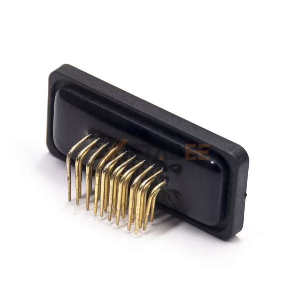 Waterproof 26 Pin High Density D-Sub Male Connector for PCB Mount, Right Angle, Machined Contacts, 2.29mm Pitch, IP67
