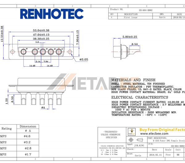- Precision Machined Contacts: Gold-plated brass contacts offer superior conductivity and long-term corrosion resistance.