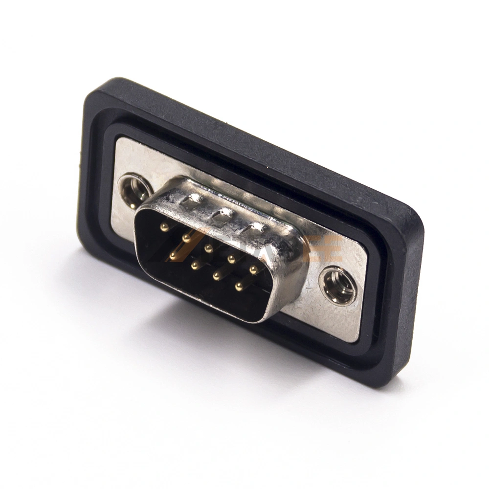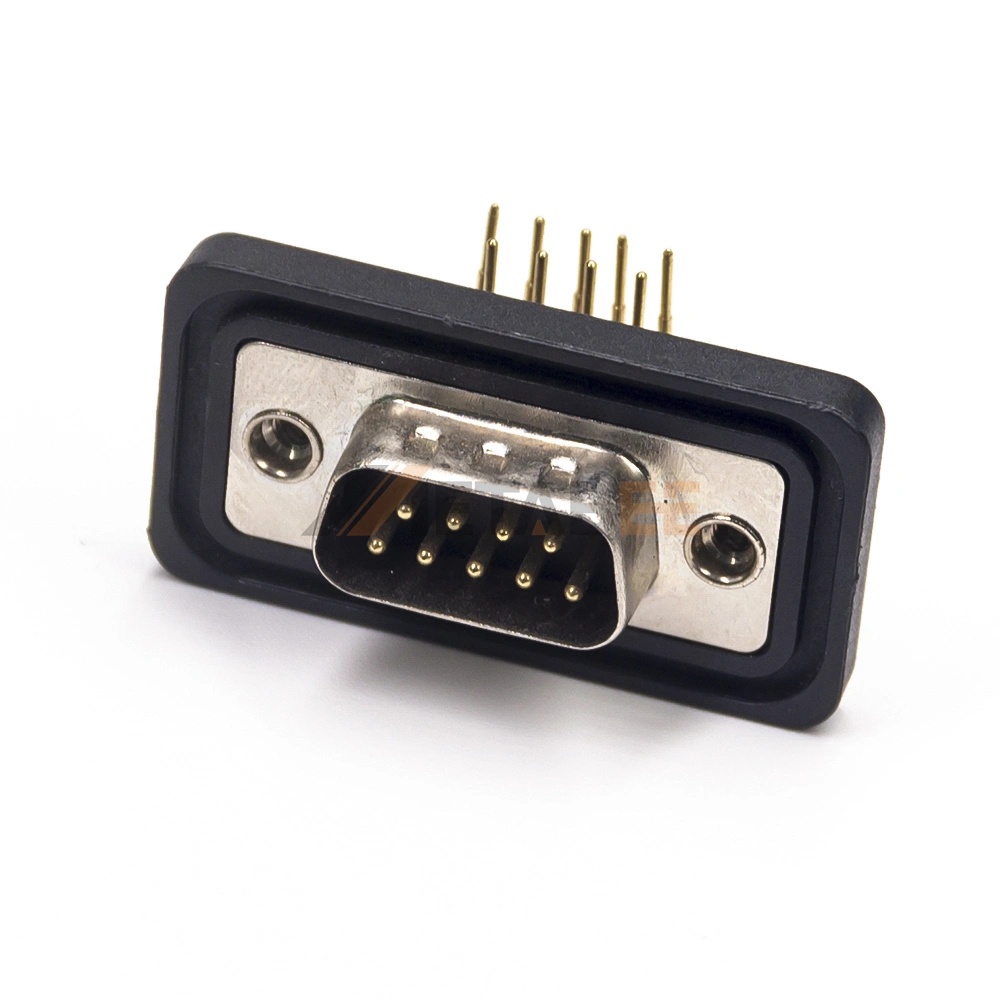 Waterproof 9 Pin D-Sub Male Connector for PCB Mount, Right Angle, Machined Contacts, 2.77mm Pitch, IP67