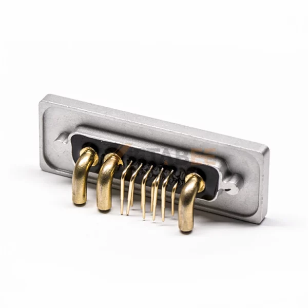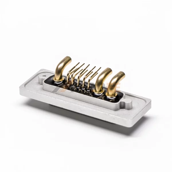 This waterproof IP67 13W3 D-Sub female combo connector delivers dual functionality. Engineered for signal and power transmission in harsh environments. 13W3 has 3 power contacts and 10 standard signal contacts. Achieves IP67 waterproof rating. Protects against dust and water immersion. Ensures reliability in harsh conditions. Features a right-angle orientation for space-saving PCB mounting. Solder termination creates a permanent PCB bond. Machined brass contacts with gold plating guarantee reliable performance. Operates reliably from -55°C to 125°C. Handles up to 40A current and 500V. Ideal for demanding industrial applications requiring hybrid connectivity.
