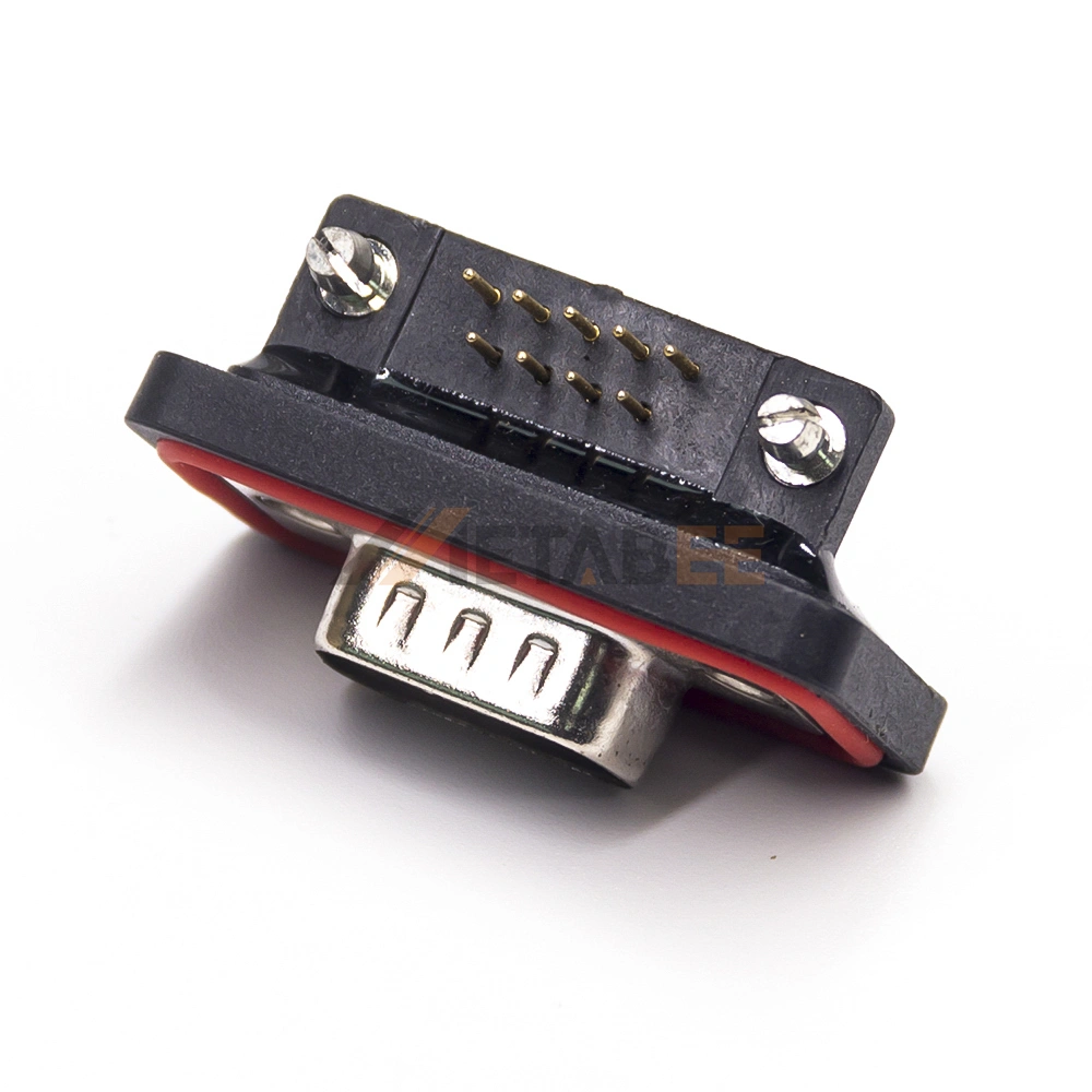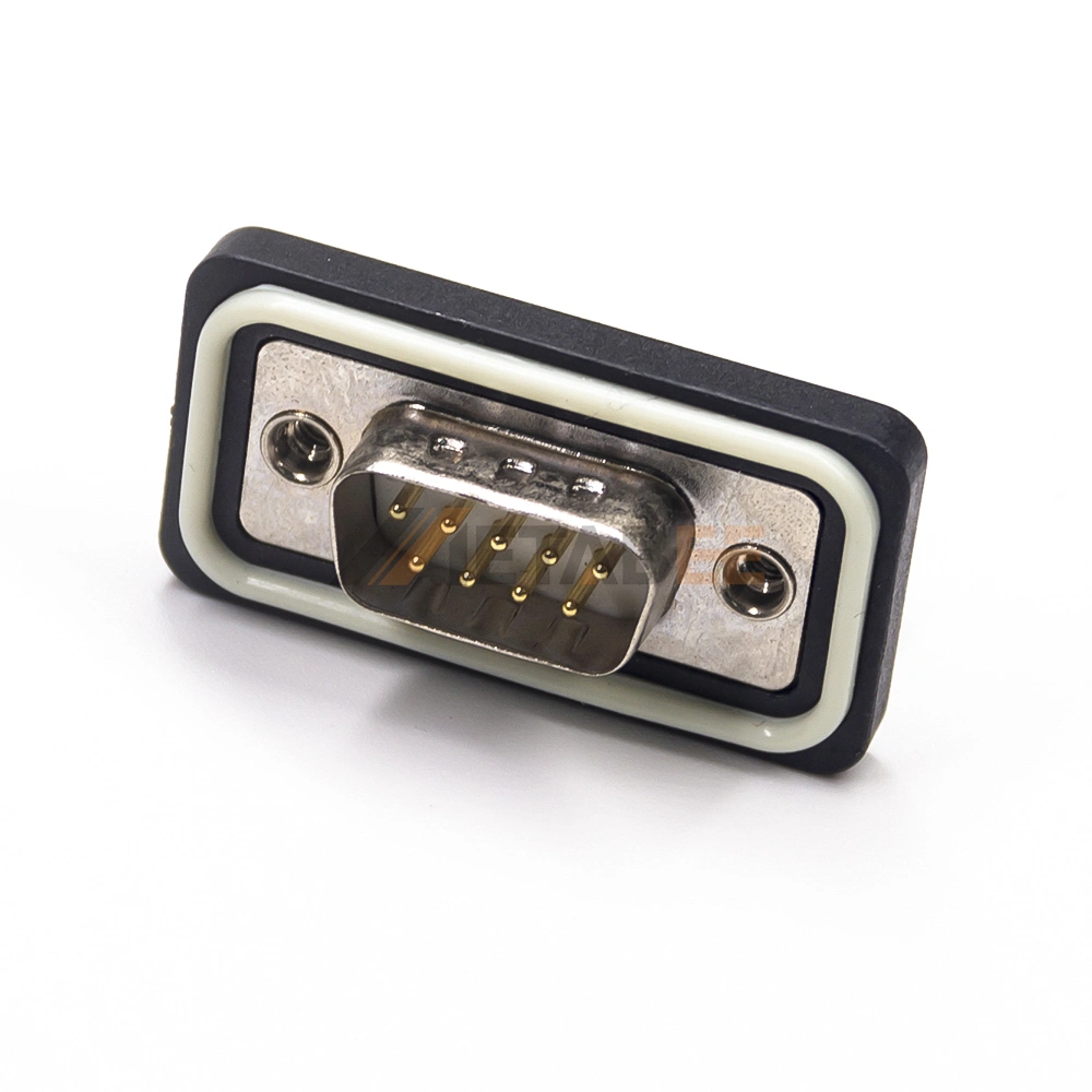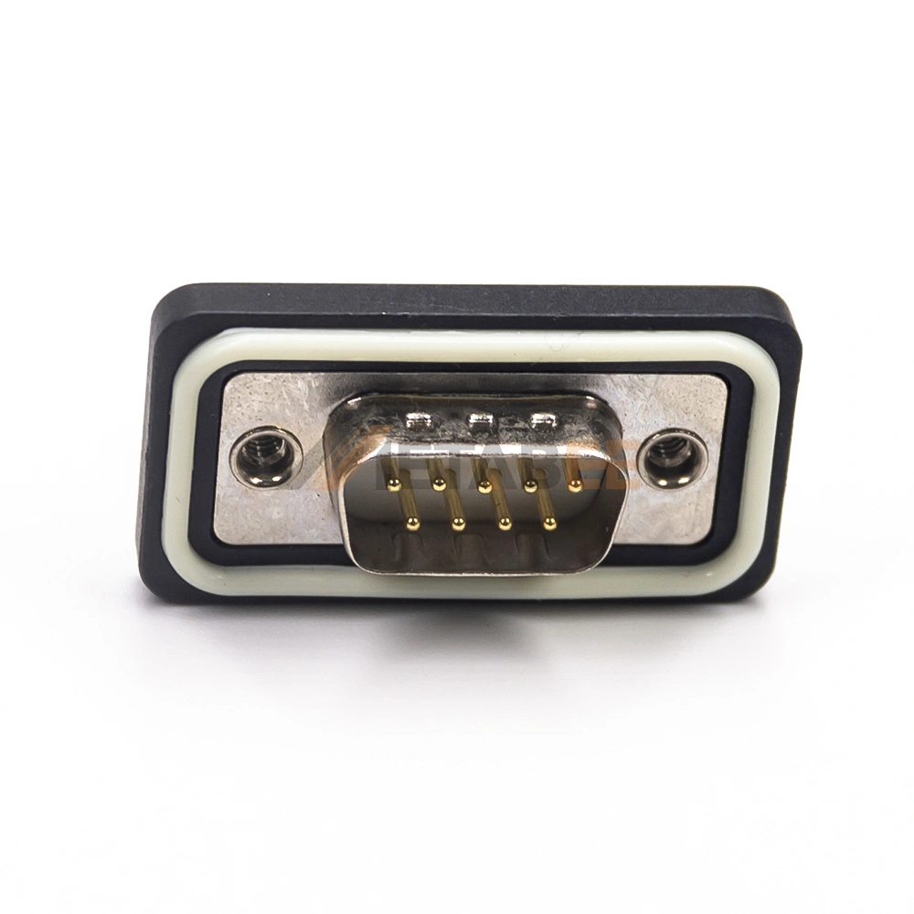 Waterproof DB9 Male Connector for PCB Mount, Right Angle, Machined Contacts, 2.77mm Pitch, IP67
