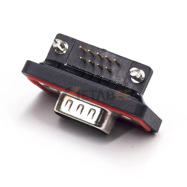 This waterproof DB9 male connector is built for reliable PCB mount applications. It features a right-angle orientation and a rugged E-size shell. The solder-terminated PCB mount design ensures a stable electrical connection. It achieves a reliable IP67 environmental seal. The connector ensures superior signal transmission with a 2.77mm pitch and 2-row layout. Its rugged steel shell is nickel-plated for corrosion resistance. Precision-machined brass contacts are gold-plated for optimal signal integrity. The connector uses a durable PBT insulator. It operates reliably in extreme temperatures from -55°C to +125°C. Rated for 5A current and 250V voltage. Ideal for industrial, marine, and outdoor applications where moisture resistance is critical.