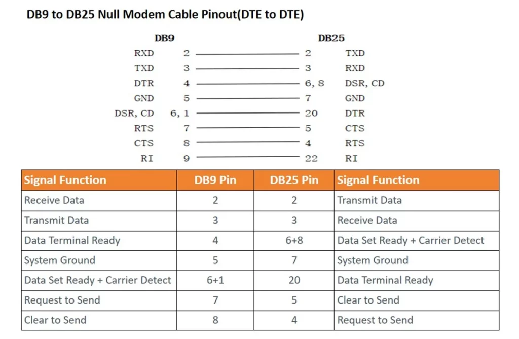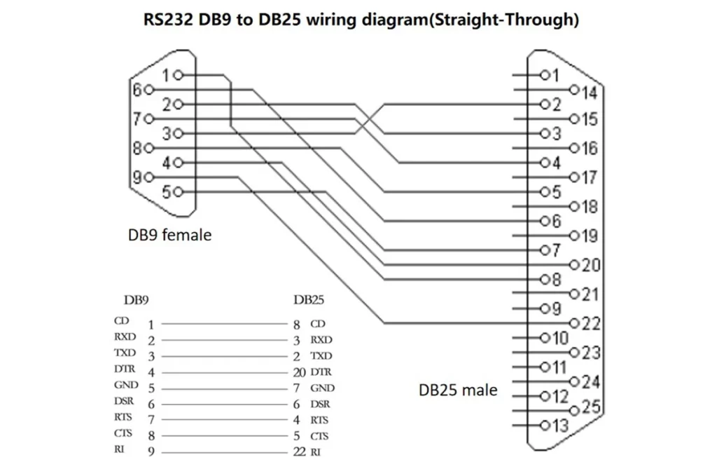 DB9 to DB25 Pinout and Wiring Diagram