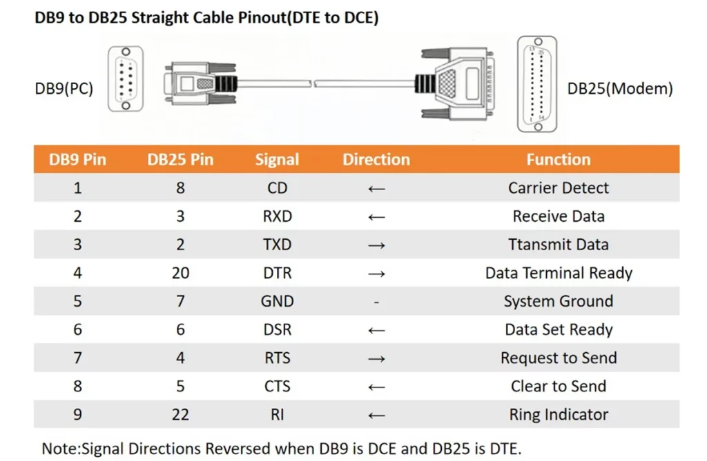 Connecting DB9 and DB25 RS232 interfaces can be tricky if you’re not sure how their pin layouts match. A single mistake in wiring can cause failed communication or even device damage. This guide covers everything you need to know about the DB9 to DB25 pinout. It includes RS232 wiring diagrams, the difference between straight-through and null modem cables, and tips on choosing the right one for your devices. Whether you’re setting up a modem, CNC machine, or PLC system, you’ll find clear instructions and practical examples to help you connect correctly.