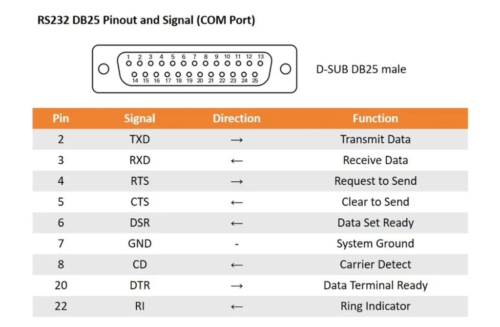 RS232 DB25 Pinout