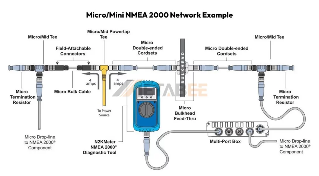 | Mini Cable | Thicker gauge, larger connectors. Used for commercial or large vessel installations. | Can support much longer backbones (up to 200 meters) and higher current loads. |